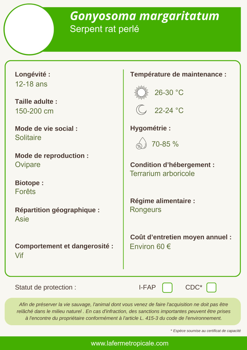 Fiche d'information Gonyosoma margaritatum Cliquer pour agrandir