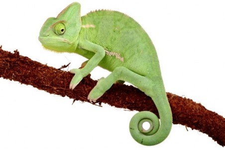 La principale caractéristique de ce grand caméléon est la présence d'un "casque" sur le crâne, deux fois plus grand chez les mâles que chez les femelles, et pouvant atteindre 8 cm. La coloration de base, verte et jaune, peut changer pour une gamme impressionnante de couleurs différentes. Contrairement aux idées reçues, ces changements n'ont pas lieu pour se fondre dans l'environnement, mais pour suivre des facteurs internes (état émotionnel, état de santé) ou externes (par exemple, une couleur plus sombre lui permet de mieux absorber la chaleur du soleil). Il peut la propulser sa langue pour attraper ses proies grâce à son extrémité collante.