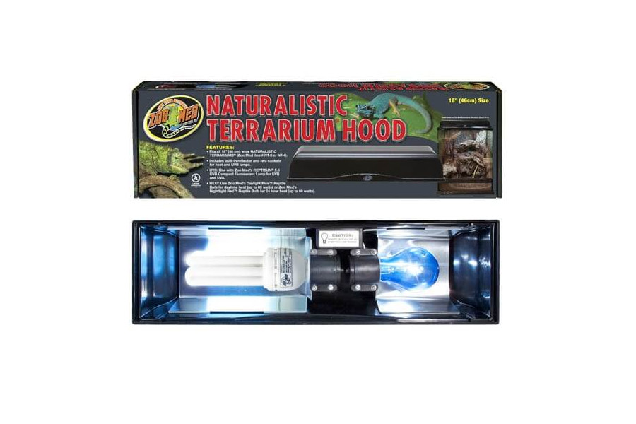 Les rampes Naturalistic Terrarium® Hood de ZooMed sont conçues pour s’adapter parfaitement aux terrariums Naturalistic de la marque. Elles intègrent un réflecteur pour maximiser la diffusion de la lumière et de la chaleur, ainsi qu’une ou deux douilles selon le modèle pour accueillir des lampes UVB ou chauffantes.