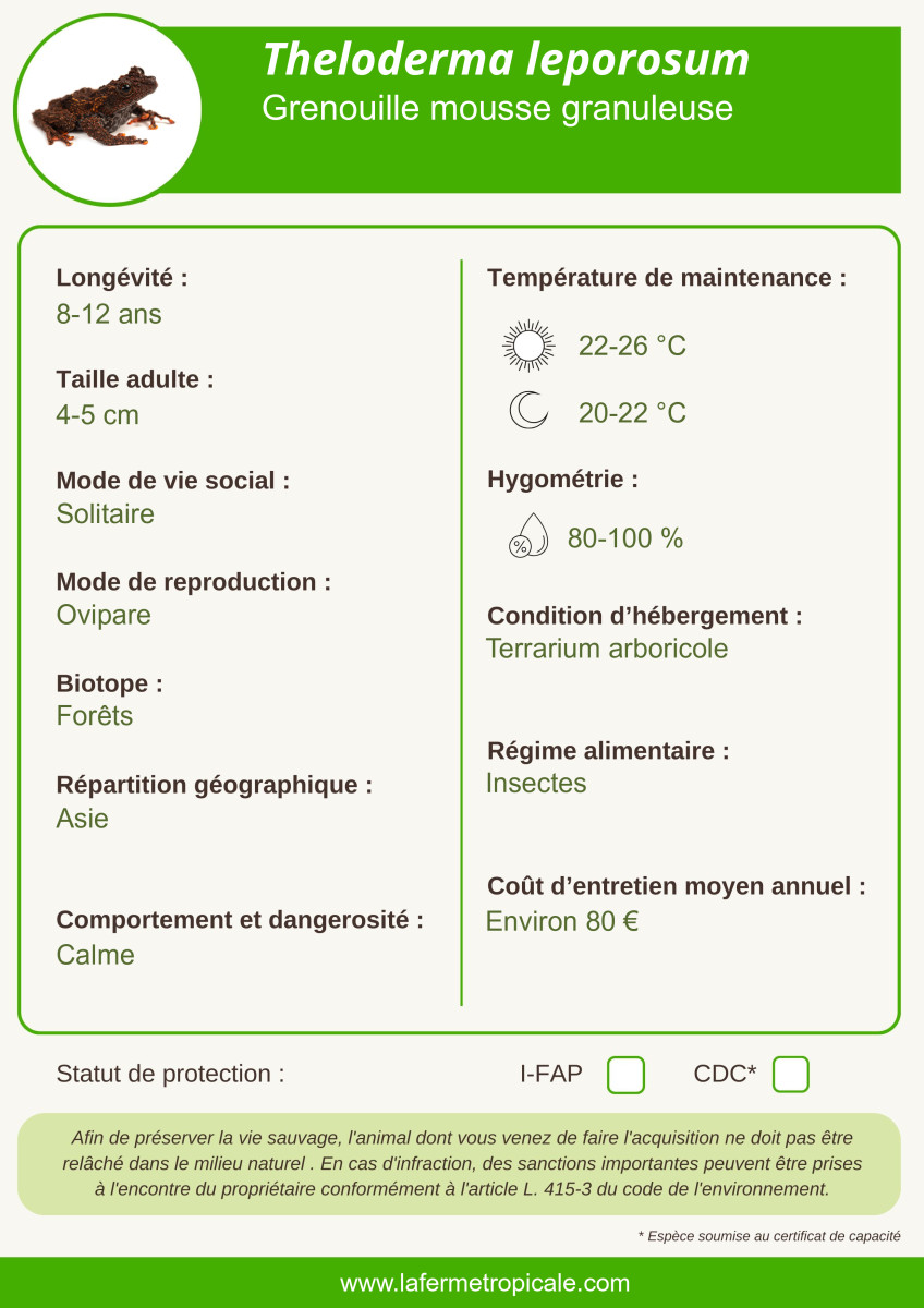 Cette espèce vit dans les zones forestières et montagneuses de Malaisie ainsi que de Sumatra. C'est la plus grande des Theloderma malaisiennes. Elle est caractérisée par une coloration brune et la palmure des pattes orangée. Comme les autres grenouilles du genre, son dos est recouvert de tubercules calcifiés, lui donnant cet aspect de "mousse".