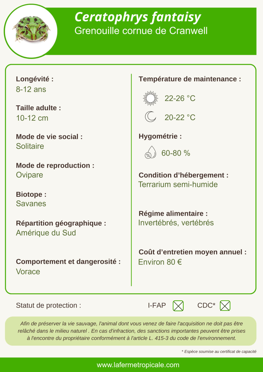 Cette forme de Ceratophrys est le résultat d'un croisement en milieu contrôlé. Cette grenouille atteint une grande taille. Ces grenouilles sont stériles et doivent être strictement isolées d'autres espèces.