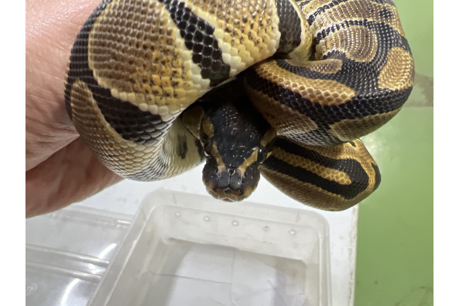 C'est le fameux Python royal. D'une taille adulte raisonnable (90 à 140 cm), c'est un serpent docile. Les femelles sont plus grandes que les mâles.