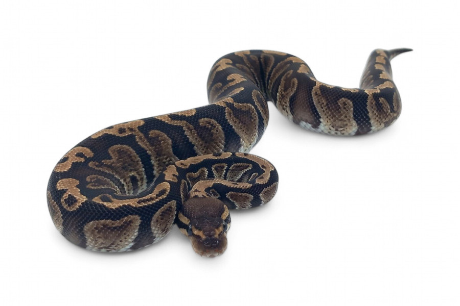 C'est le fameux Python royal. D'une taille adulte raisonnable (90 à 140 cm), c'est un serpent docile. Les femelles sont plus grandes que les mâles.