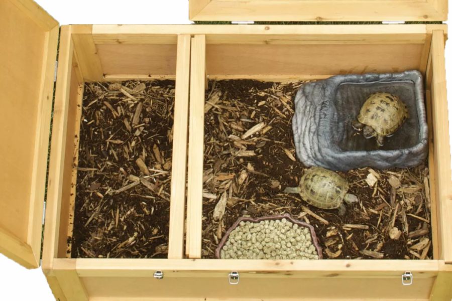 Modèle avec paroi latérale en bois (pour l'intimité) préféré par les passionnés des tortues.