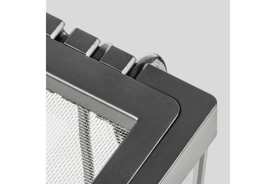 L’une des caractéristiques exceptionnelles est le verrou breveté intégré au couvercle amovible qui, en plus de la porte frontale double, rend l’entretien considérablement plus commode. Fait de grillage en acier inoxydable, le couvercle verrouillable contribue à la pénétration optimale des rayons UVB, lesquels sont vitaux pour le bien-être des organismes dans le terrarium.