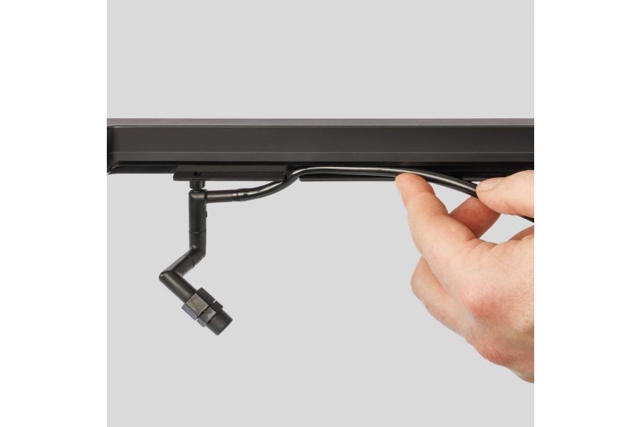 Sur le dessus, à l’arrière du terrarium, se trouvent plusieurs orifices à fermeture automatique pour fils ou tuyaux. À l’intérieur, des gouttières ont astucieusement été intégrées pour le rangement efficace des tuyaux, et les points de fixation spécifiques pour les becs facilitent l’installation d’un système automatique de brumisation. De plus, le système pratique de drain de fond intégré permet d’éliminer très facilement l’excès d’eau.
