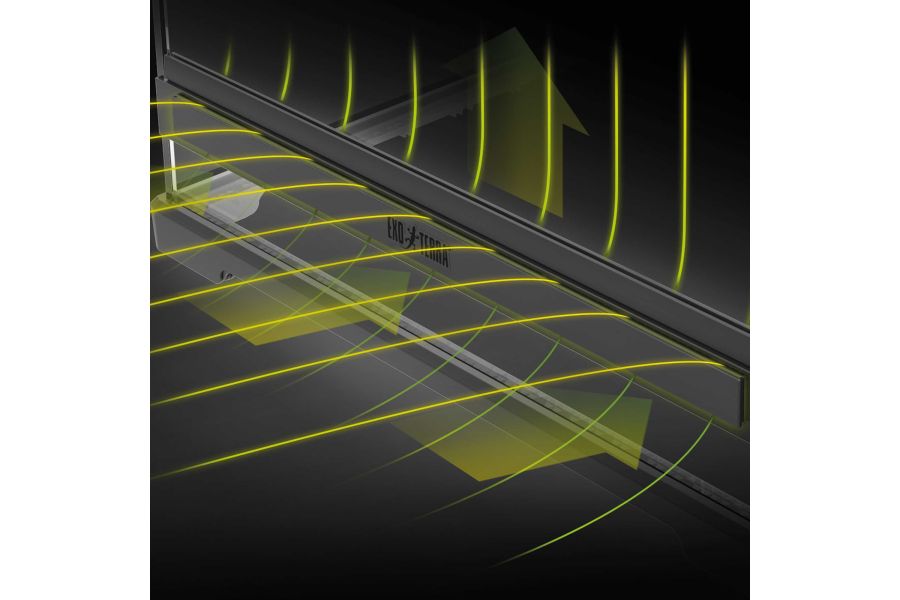Le système d’aération dissimulé permet de maintenir un aspect propre, ce qui rend le terrarium plus élégant. De plus, ce terrarium est muni d’un système avancé de débit d’air réglable à trois niveaux, permettant un contrôle précis de l’environnement. Le débit d’air forcé vertical breveté est conçu pour empêcher efficacement la condensation afin de bien voir dans le terrarium et d’avoir un habitat plus sain. La circulation améliorée de l’air est essentielle à la santé respiratoire des reptiles et des amphibiens. Le collecteur intégré de débris emprisonne toute particule de poussière ou de sable s’échappant des orifices d’aération pour un environnement sans dégât.