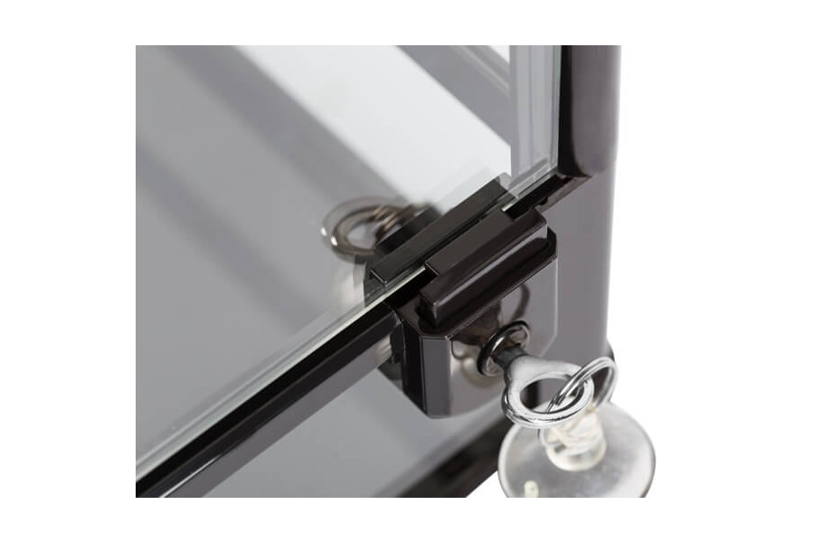 Fermeture sécurisée par clé et ouverture facile avec ventouse (pas de poignée apparente sur la façade de la vitre)