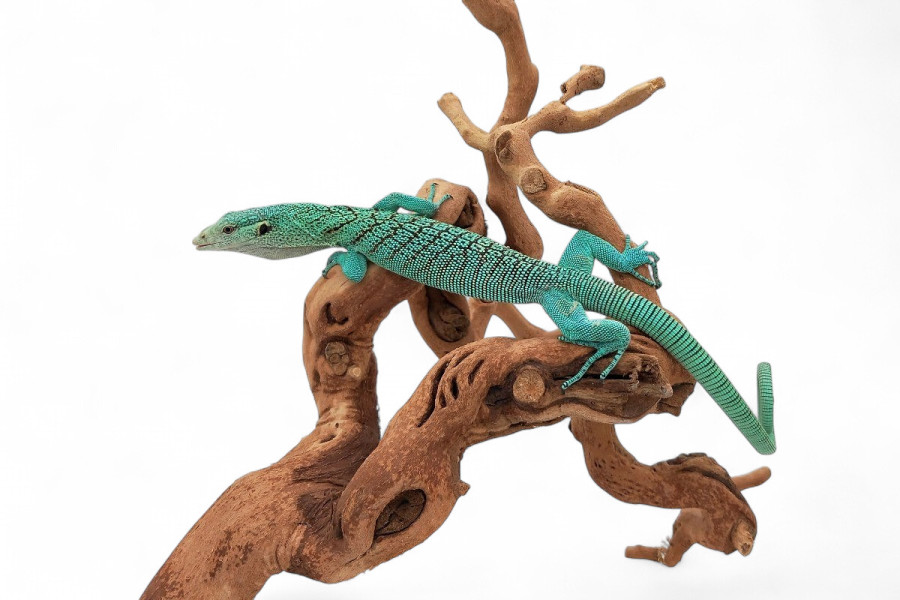 Le varan émeraude (Varanus prasinus) est un splendide varan de couleur verte et avec ocelles noires, parfois mouchetées de bleu. Très proche de Varanus beccarii et Varanus macraei, il occupe la canopée des forêts tropicales denses de Papouasie-Nouvelle-Guinée. Il est particulièrement adapté à la vie arboricole avec sa longue queue préhensile. Il consomme une grande variété de proies, incluant insectes, rongeurs, amphibiens et reptiles. Les adultes atteignent une taille de 70 à 80 cm, avec un corps fin et élancé.
